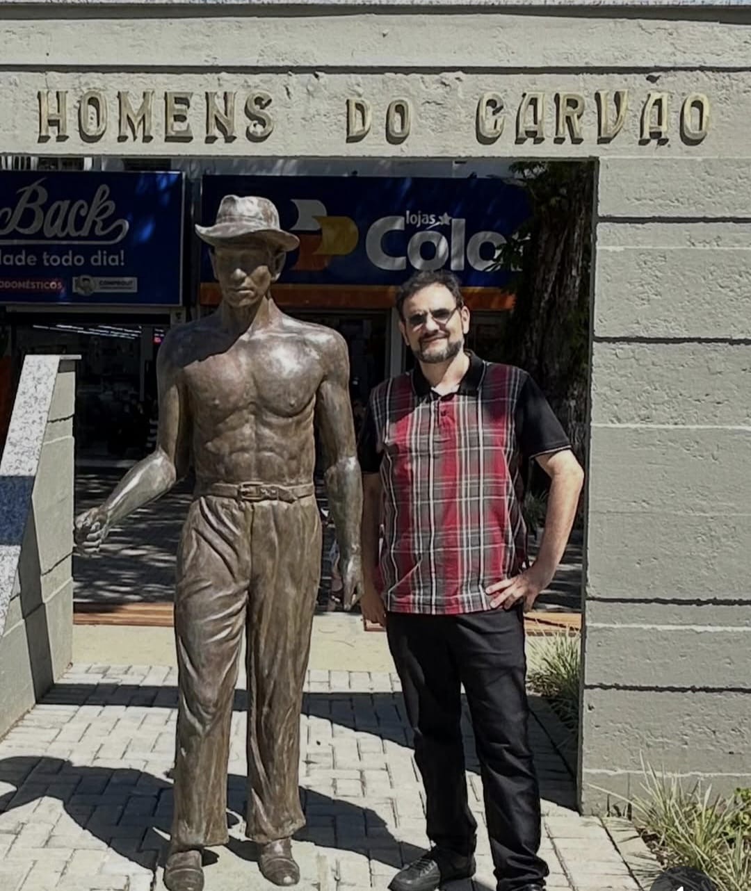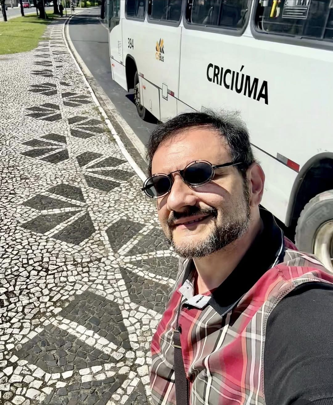 O autor da novela Três Graças, Zé da Silva, escolheu Criciúma para passar o feriadão de Páscoa. Nascido na cidade, o jornalista, cartunista, roteirista e escritor — que atualmente vive no Rio de Janeiro — retornou à terra natal para aproveitar o período ao lado da família. Durante a breve passagem, no sábado de Aleluia, Zé fez questão de registrar o momento com fotos em pontos simbólicos da cidade, como ao lado de um “busão” e do tradicional Monumento ao Mineiro, no calçadão da Nereu Ramos.