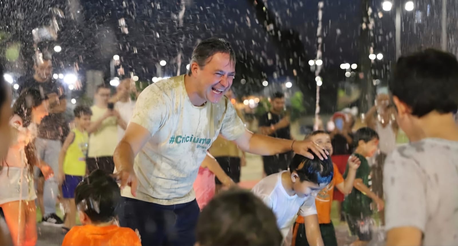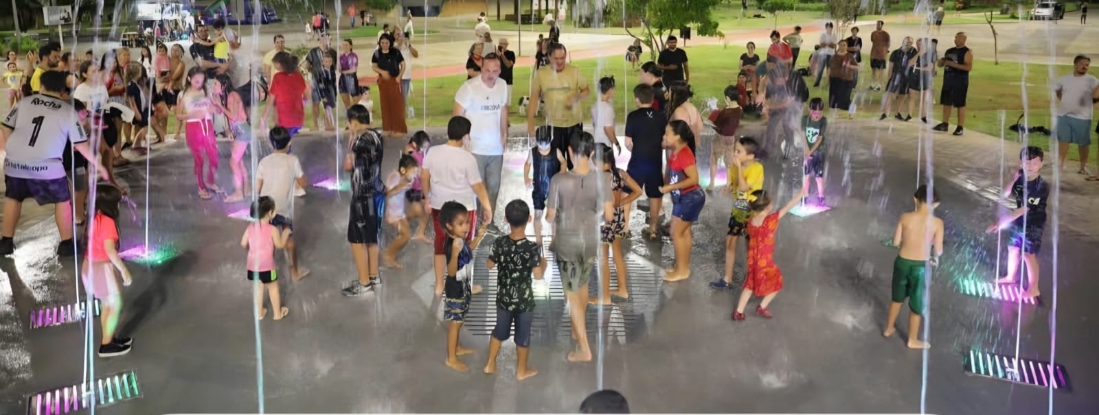 Em clima descontraído e sob a lua cheia da noite desta terça-feira (3), o prefeito Wagner Spindola inaugurou um moderno conjunto de chafarizes projetado para banho público, instalado em pleno coração do Parque da Prefeitura. O espaço, que promete se transformar em novo ponto de encontro da comunidade nos dias de calor, foi entregue com estrutura contemporânea e proposta de lazer acessível para todas as idades. Em gesto simbólico – e para já entrar no clima da novidade – o próprio prefeito fez questão de tomar o primeiro banho, ao lado do público que prestigiou a inauguração. A cena arrancou aplausos e marcou oficialmente a abertura do novo espaço, que já nasce com jeito de cartão-postal e ponto de refresco da cidade.