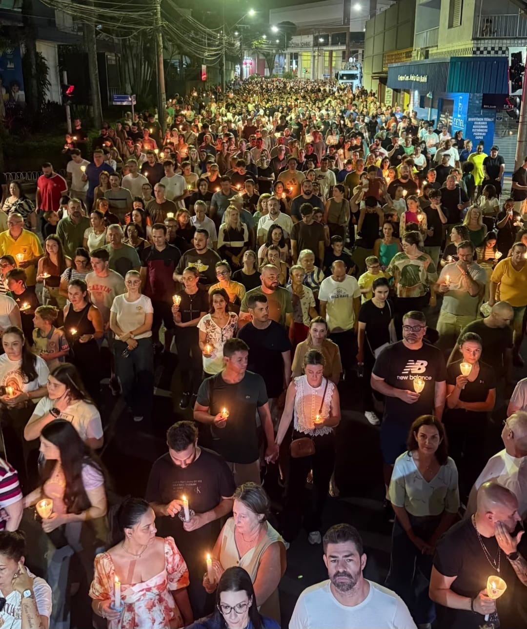 De vela na mão, prefeito promete pavimentar novo caminho santo em Criciúma