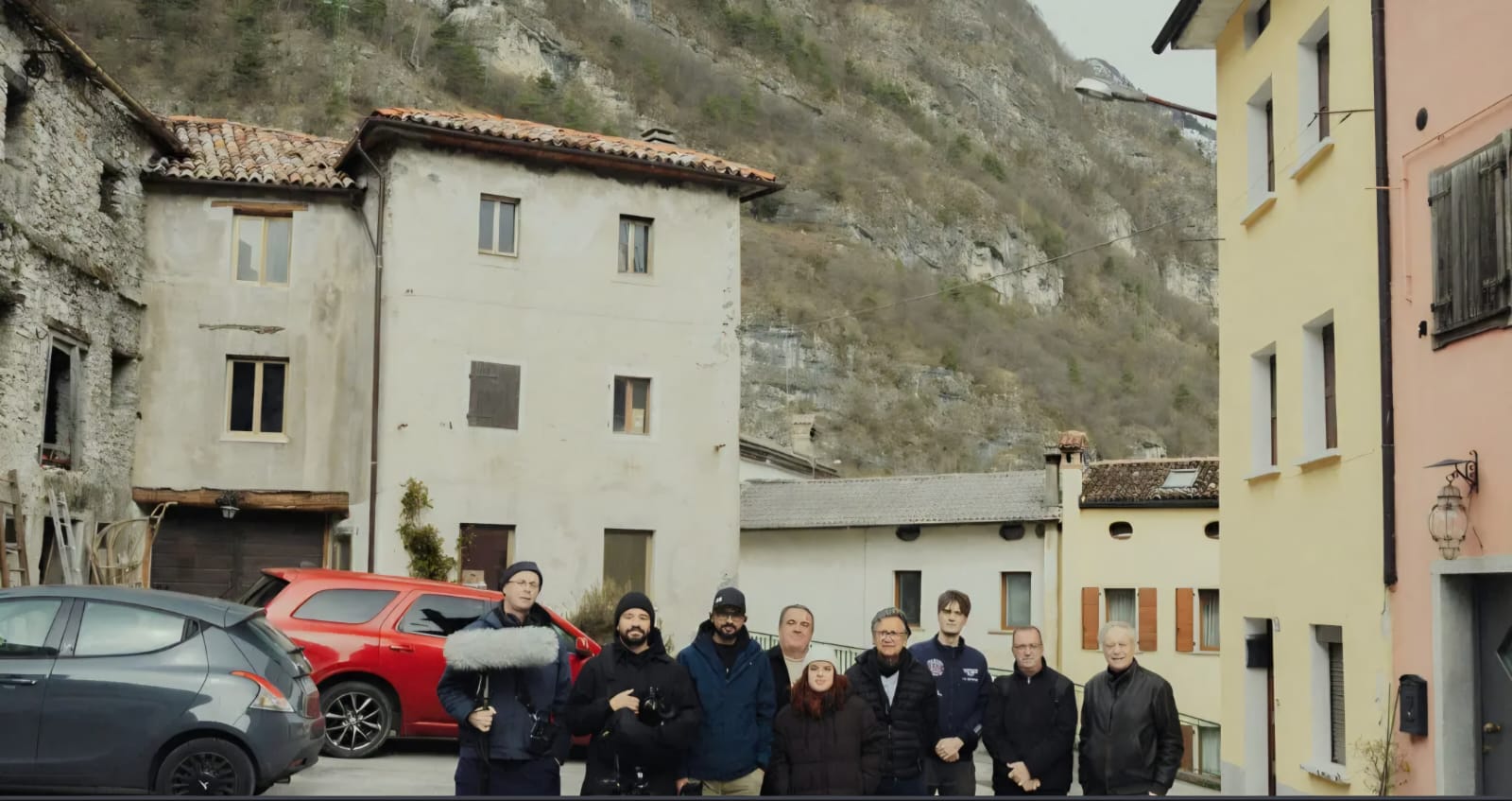 As cenas foram registradas na praça de Fortogna, localidade pertencente à comune de Longarone — ponto de origem dos descendentes da família Ghislandi.
