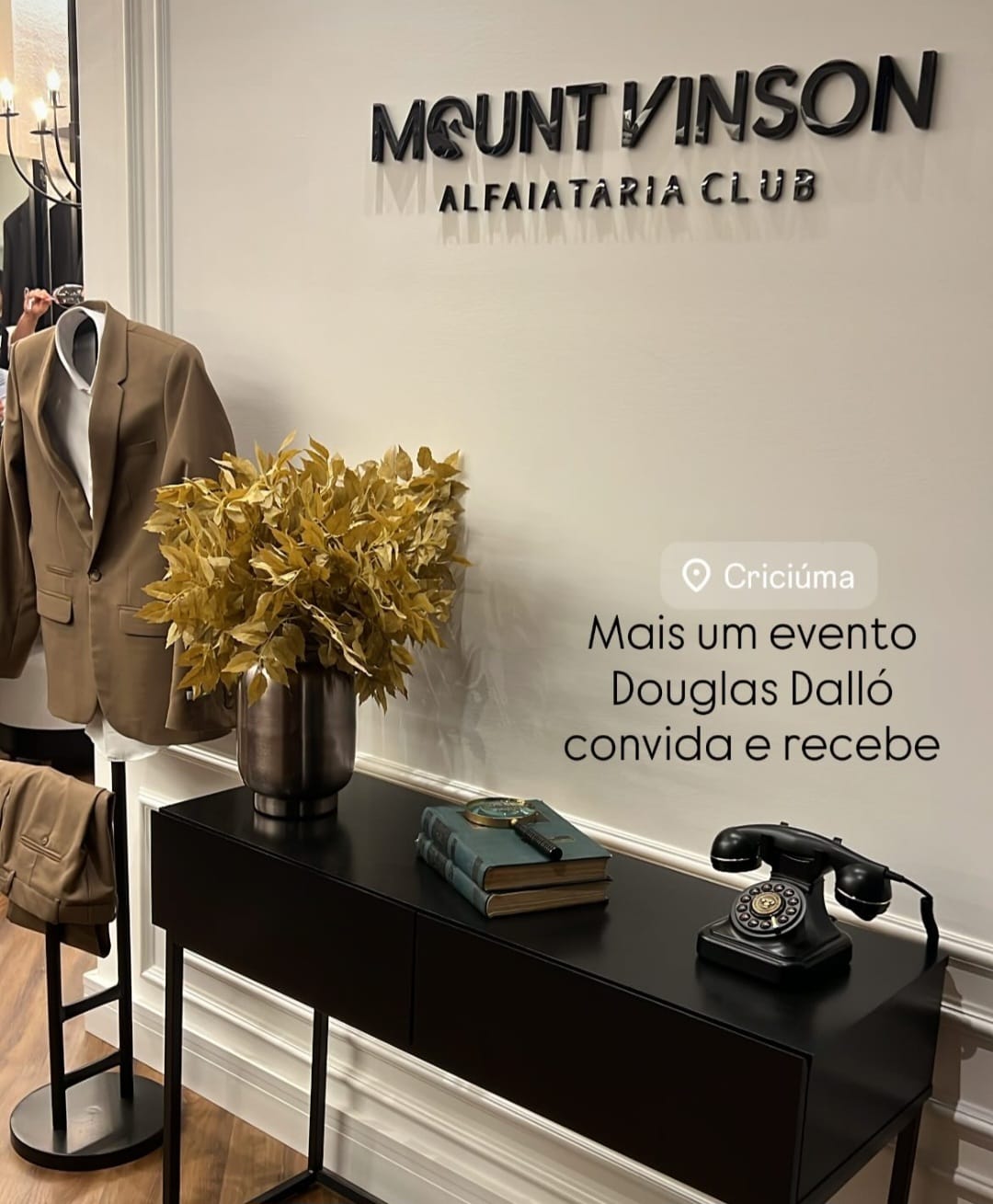 Douglas Dalló movimentou a cena social de Criciúma ao reunir, na noite desta quinta-feira, 13, um seleto e eclético grupo de empresários, profissionais liberais e amigos de A a Z para conhecer o Mount Vinson Alfaiataria Club, um espaço masculino sofisticado, totalmente voltado ao universo fashion. O encontro teve clima descontraído e elegante, marcado por um coquetel especial, ótimas conversas, bons vinhos e muita confraternização. A noite destacou o estilo único do ambiente e reforçou a proposta do clube: unir moda, experiência e relacionamento em um só lugar.