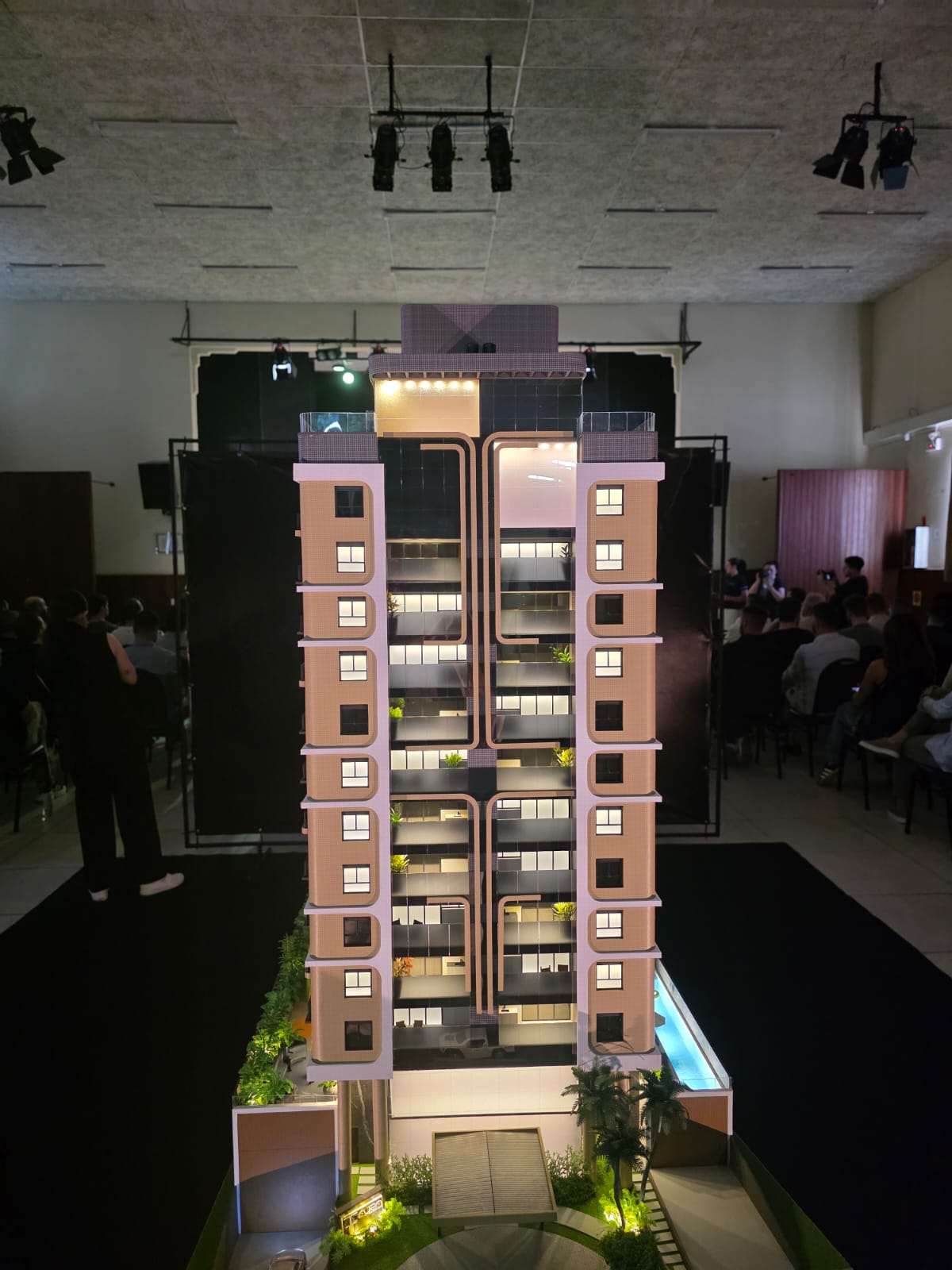 Durante a noite, foi oficialmente apresentado ao público o Aura Residence — um edifício de 17 pavimentos, projetado para oferecer conforto, sofisticação e funcionalidade. Serão 40 apartamentos, 4 coberturas duplex e um pavimento completo dedicado à área de lazer, localizado na Avenida Getúlio Vargas, uma das mais valorizadas da cidade.