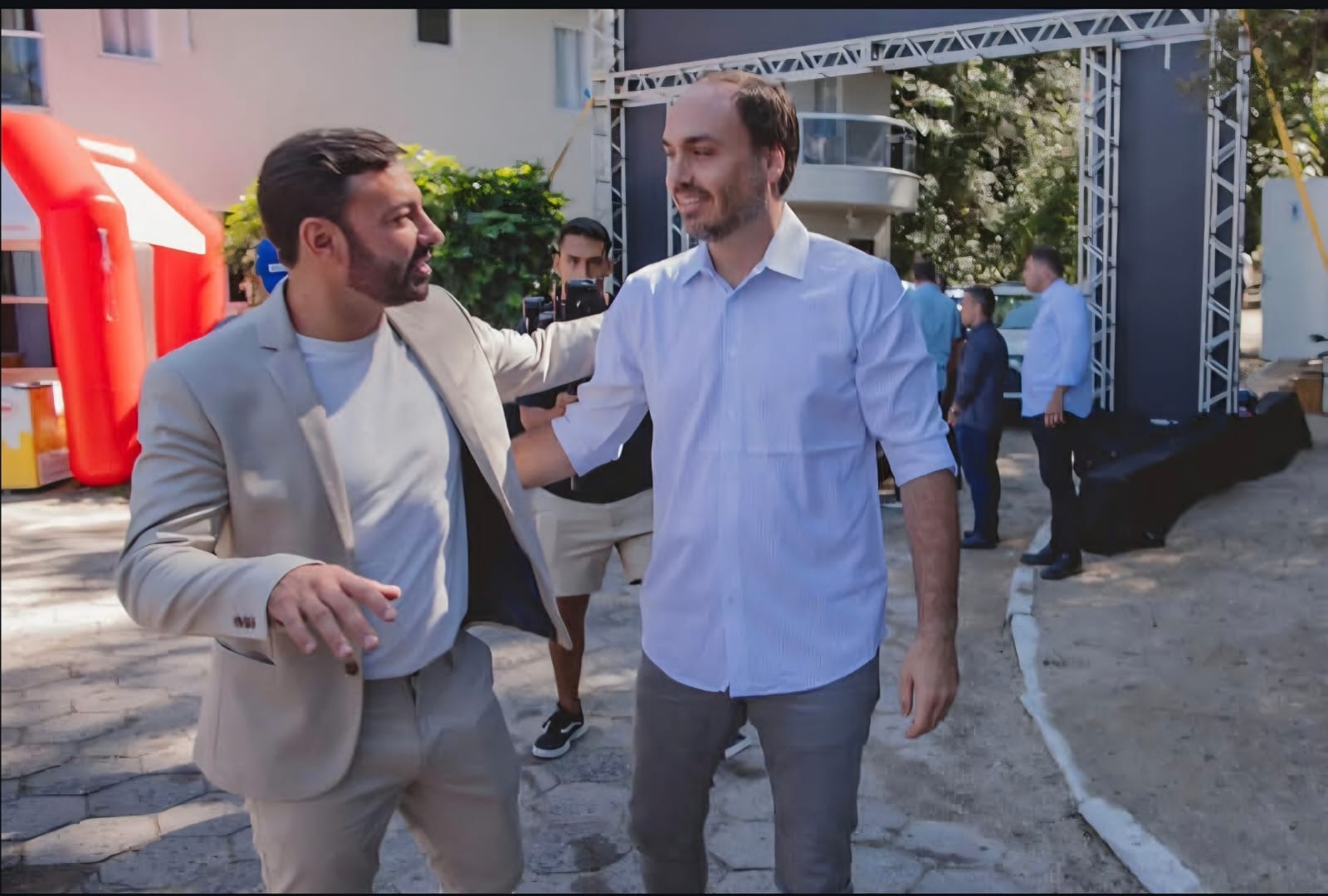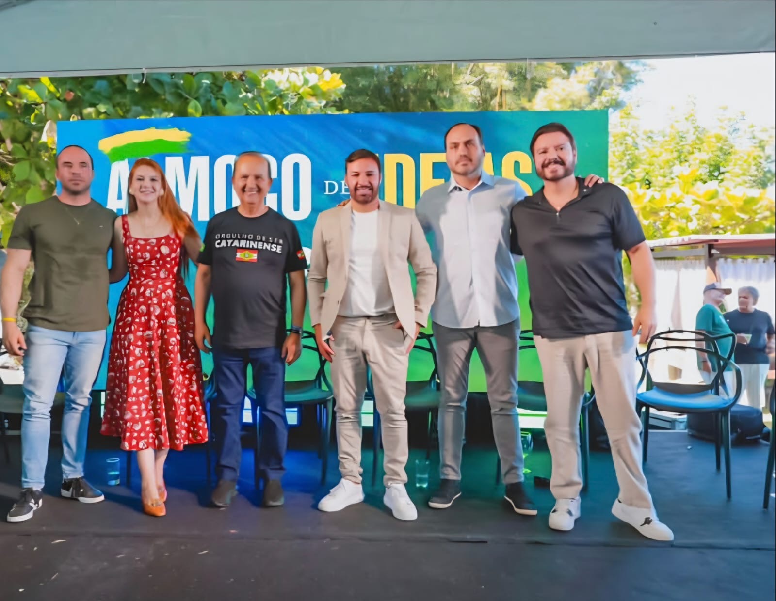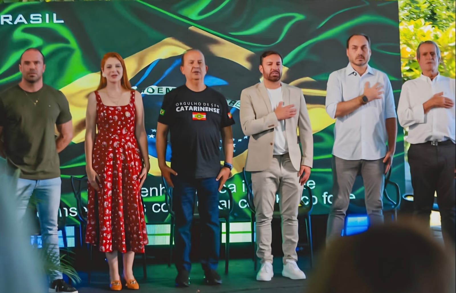 Por mar, terra e ar, lideranças desembarcaram para o encontro. Entre os presentes, o presidente nacional do PL, Valdemar Costa Neto, o governador de Santa Catarina, Jorginho Mello, e o vereador carioca Carlos Bolsonaro.