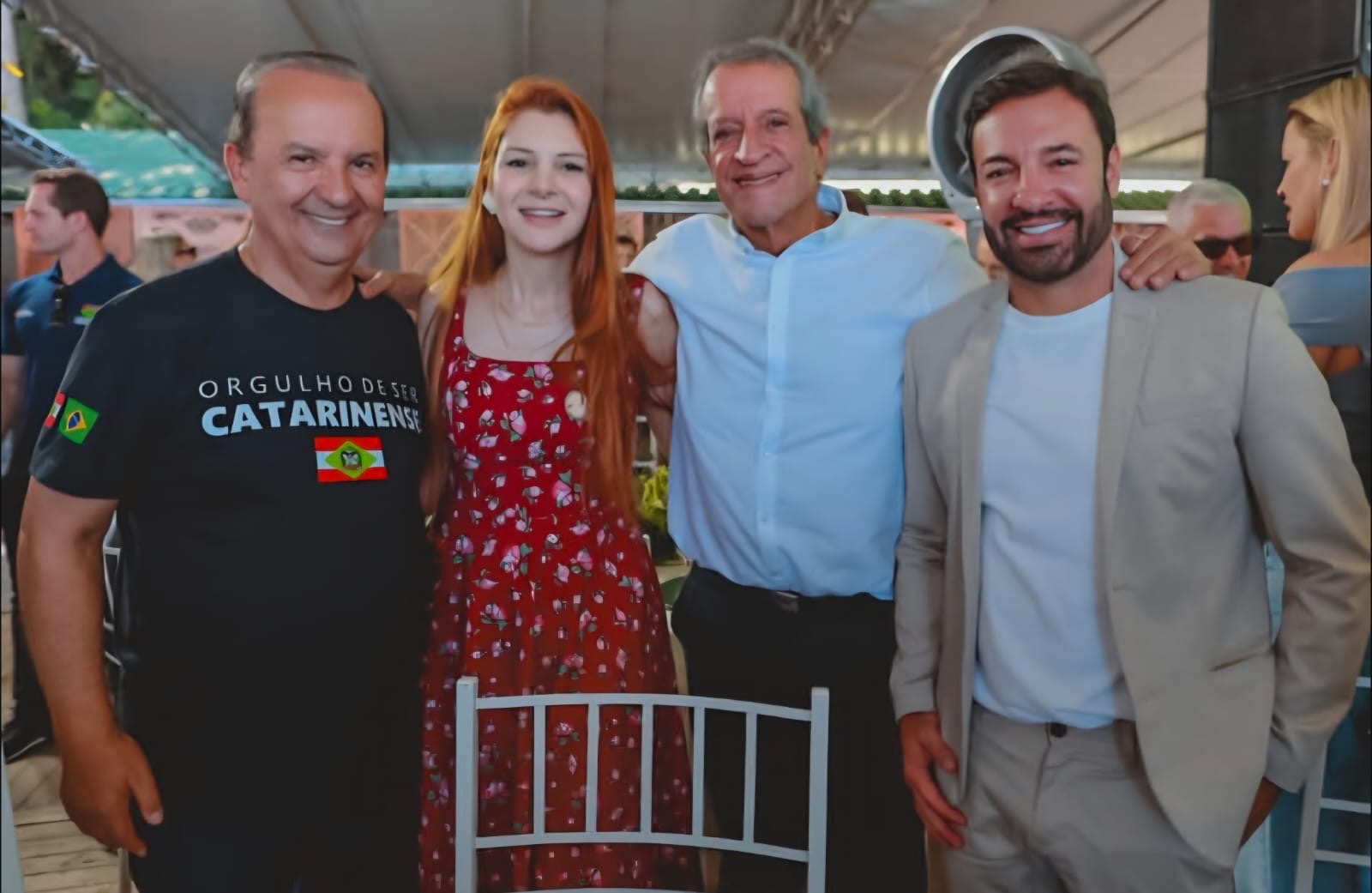 A lista de convidados ainda contou com forte presença do alto empresariado catarinense, reunindo nomes expressivos do PIB regional do Sul, como Pedro Reis (Esquimó), Deoclésio e Alessandro Pavei, Carlos Fontanella e Anselmo Freitas — que chegou ao encontro em seu helicóptero acompanhado da prefeita de Içara, Dalvania Cardoso, para o beija-mão em um dos momentos mais comentados do dia.