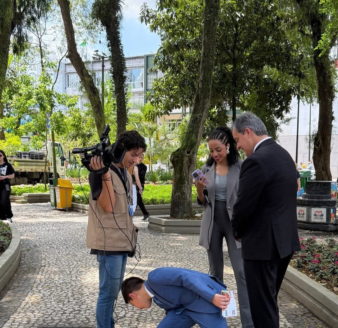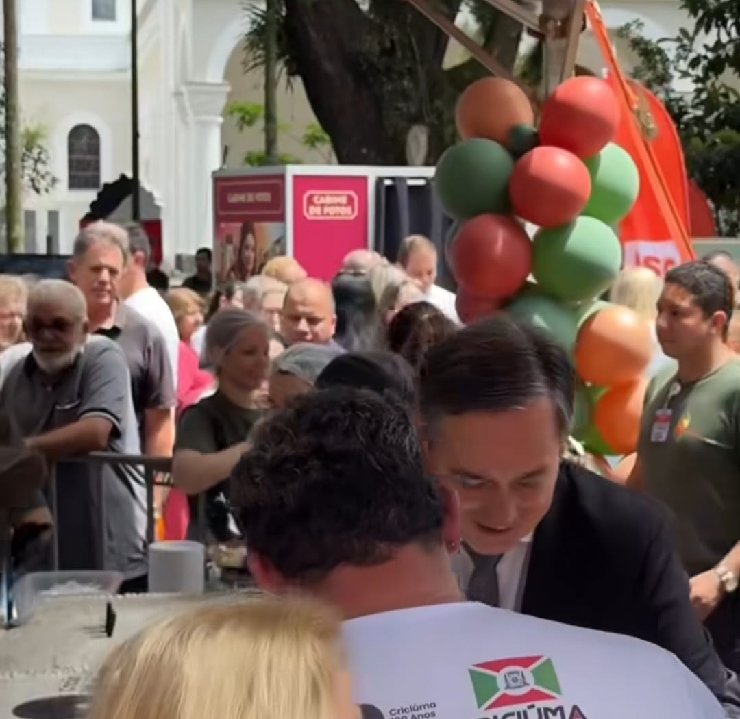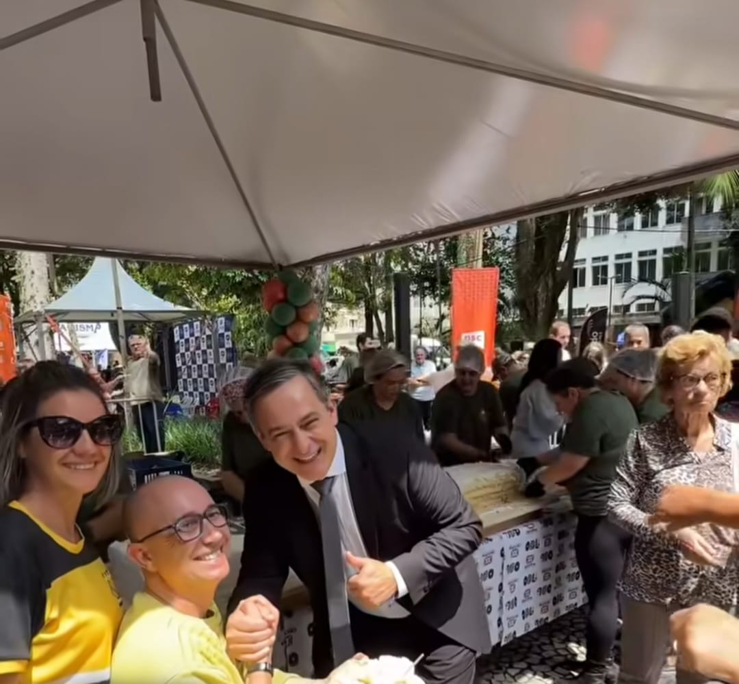 A comemoração dos 100 anos de emancipação político-administrativa de Criciúma transformou a Praça Nereu Ramos em um verdadeiro palco de festa — e de entrevistas!