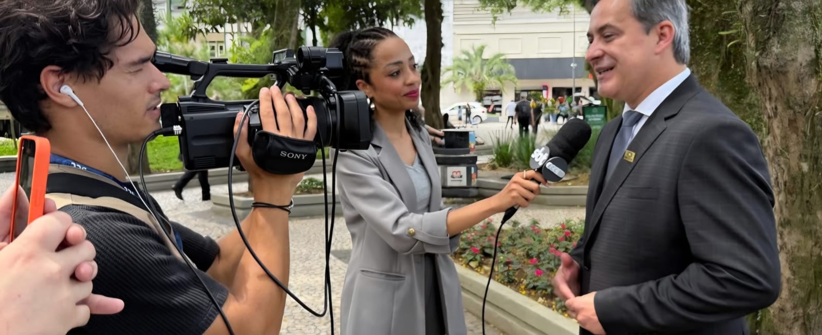 Entre homenagens, apresentações e muita emoção, outro espetáculo chamou atenção: a corrida pelos microfones e câmeras. Quatro rádios e três emissoras de TV se espremeram no mesmo espaço em busca de uma boa fala (ou de uma boa imagem!).